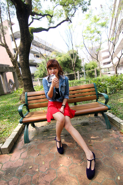 imagine這件紅裙我還是很愛說!!然後我搭了件牛仔上衣整個很搭呀
